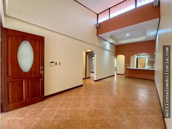 Sala, cocina, comedor, 2 habitaciones, 1 baño compartido, 1 habitación principal con closet, baño y aire acondicionado, oficina/área de trabajo, área de lavandería, cochera para 2 vehículos.